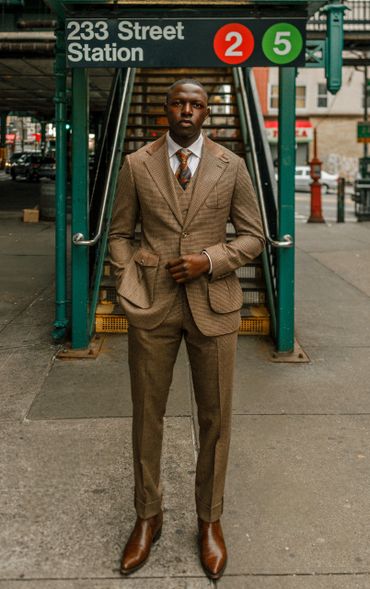 A Bruklin Bespoke statement—tailored checks, bold buttons, signature lining, pure sartorial power.
